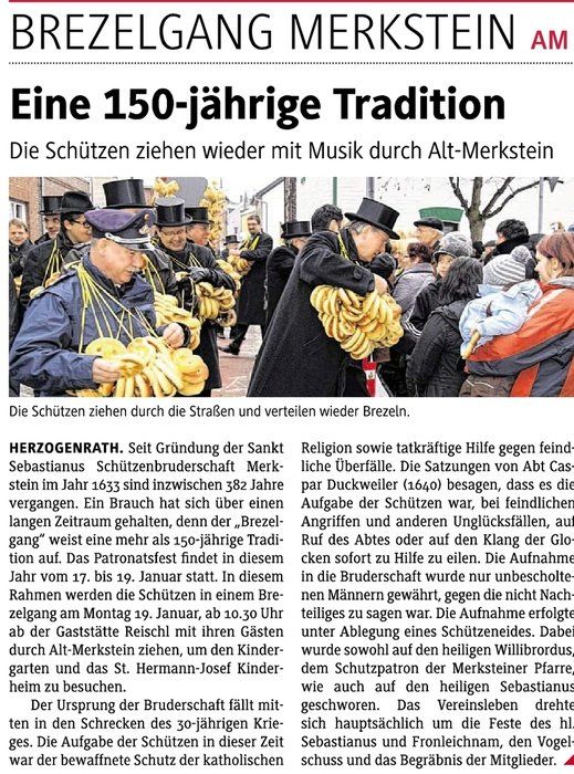 Sebastianus-Schützen: rund 3500 Brezeln verteilt Bericht AN Online 19.01.2015