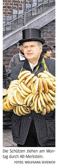 Herzogenrath. Der traditionelle Brezelgang der St.-Sebastianus-Schützenbruderschaft in Alt-Merkstein, seit vielen Jahrhunderten Brauch, ist immer noch ein Erlebnis für Jung und Alt. Die Kinder, die in Alt-Merkstein den Schützen zujubelten, gingen nicht leer aus, denn die leckeren Brezeln wurden großzügig verteilt.